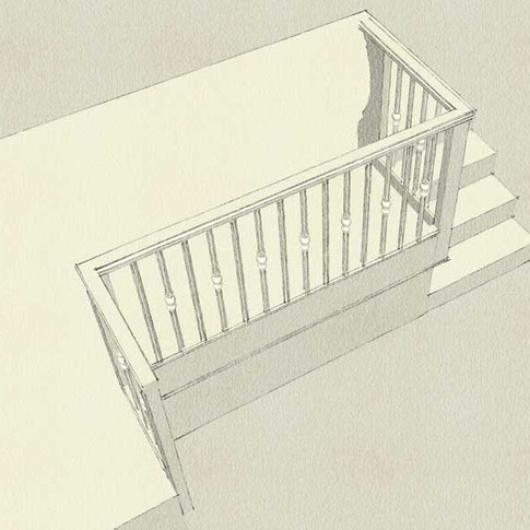 Nel primo intervallo si sviluppano le camere sui due lati della scala dando spazio ad un ulteriore pianerottolo che funge da studio grazie alla balaustra in stile.