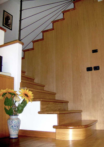 La scala di rivestimento in legno permette ad ogni struttura di adattarsi perfettamente all'ambiente che la circonda mediante la realizzazione dei gradini e delle alzate esistenti con il legno nell'essenza e nella finitura a campione desiderata.
